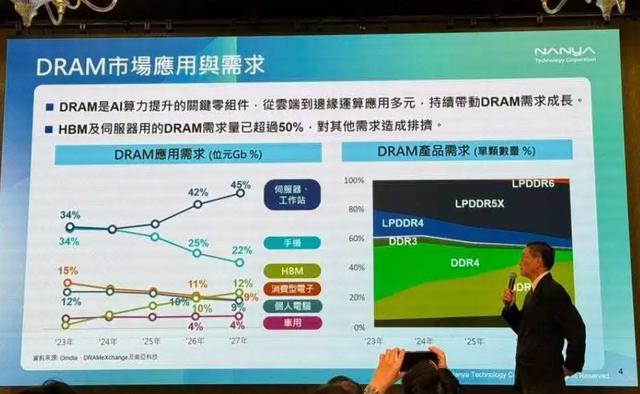 是以很显着,统共DRAM内存的需求变了,撑起统共DRAM内存商场的需求,其实是作事器、HBM等,也即是AI行业。