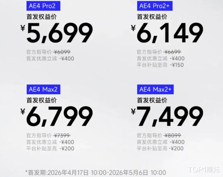 2026款AE4各版块之间的设置互异,以及电机性能互异如上图所示,顶配和次顶配版块,岂论是能源如故设置齐要高好多,不差预算的话径直上顶配版块,这个版块的AE4才是这次升级的精髓地点。而商场也为AE4新款的上市提供了积极响应,开售12小时就拿下了23847台,成为电摩热卖榜第一亚博,新的爆款出身了。