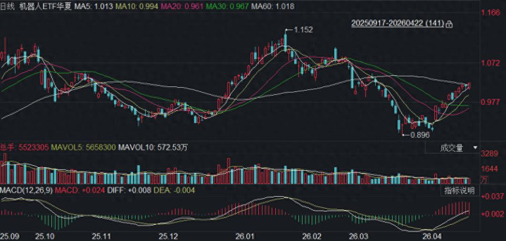 由于个股筛选难度大、波动高,机器东说念主ETF中原(562500)成为了布局该赛说念的黄金器具。