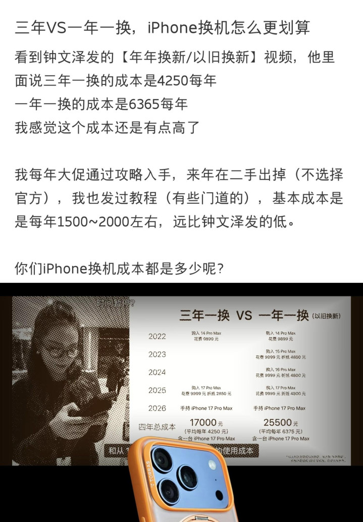 我时常看到有东说念主磋商iPhone是一年一换合算,照旧三年一换合算,好多东说念主光看价钱合计iPhone贵,但淌若算一笔账,可能就不这样思了。