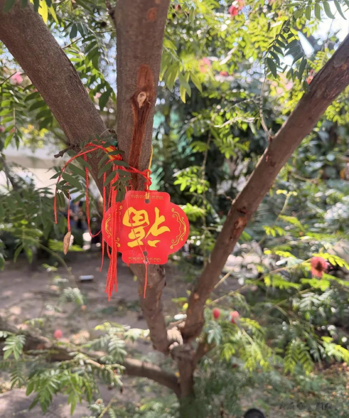 第三张相片中,一棵树上挂着红色的福字挂饰,随风轻摆,与绿叶逸趣横生,传递出传统节日的道贺意味,终末一张相片里,一只猫在屋顶上安适溜达,配景是薄暮下的城市概述,为整组相片增添了一点生存气味与休养感。